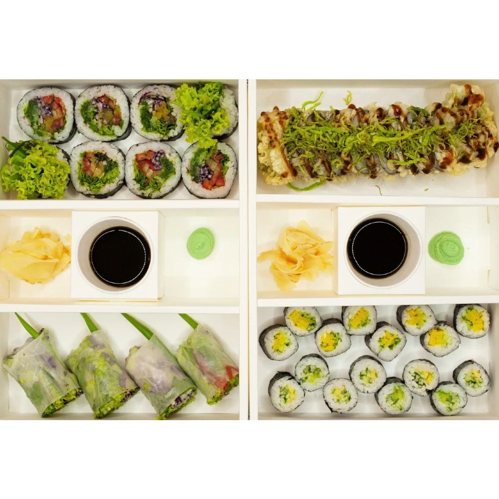 Икебана Веган Футо, Темпура Вегги, Хосомаки КаппаТаку, Хосомаки АвоКаппа, Вьетнамские летние роллы Вегги.